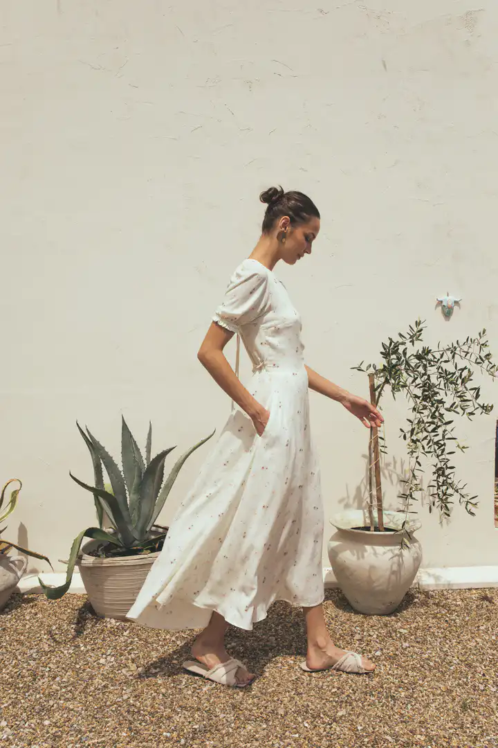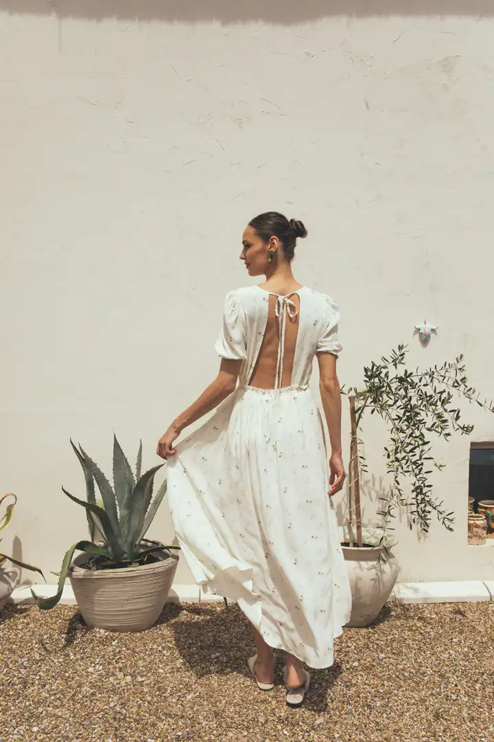 Haljina Floresita je dizajnirana da prati svaki vaš korak, omogućavajući vam da se osećate slobodno i ugodno, dok istovremeno izgledate stilizovano. Nositi haljinu Floresita znači dodati pesmu i ritam svakodnevnim trenucima, pretvarajući svaki korak u izjavu o osobnom stilu i estetici. Više od običnog odevnog komada, haljina Floresita odražava filozofiju življenja punim plućima, usmeravajući pažnju ka sporijem ritmu života koji omogućava pravo uživanje.