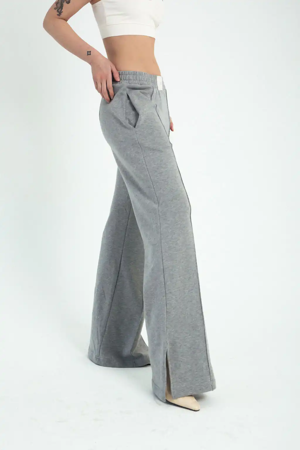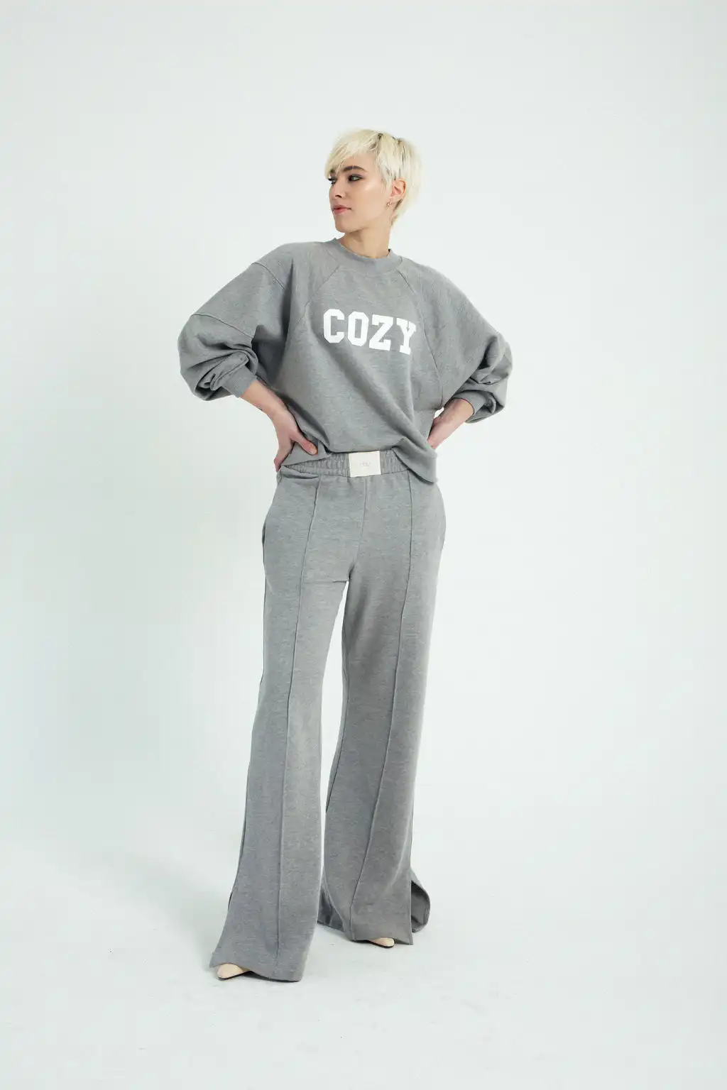 Trenerka April no.2 je široka trenerka ravnog kroja od organskog pamuka sa džepovima sa strane, i elastičnim pojasom sa našivenom etiketom. Štep po sredini i šlic sa strane joj daje poseban šmek. Izuzetno komforna i laka za kombinovanje.