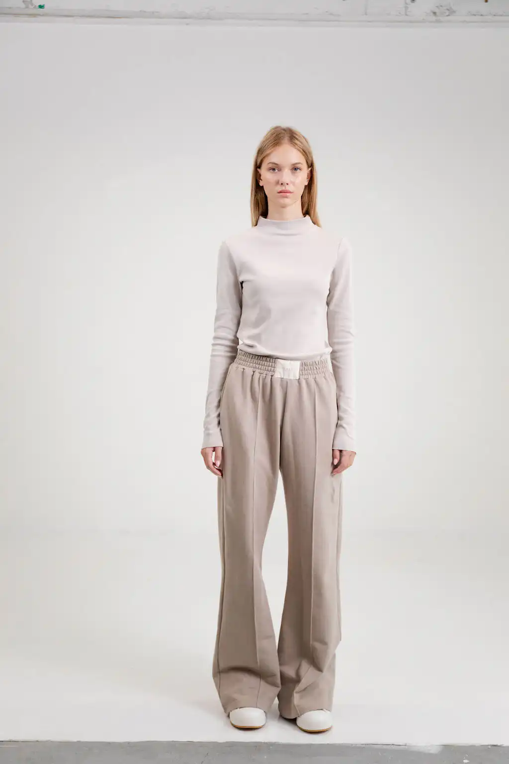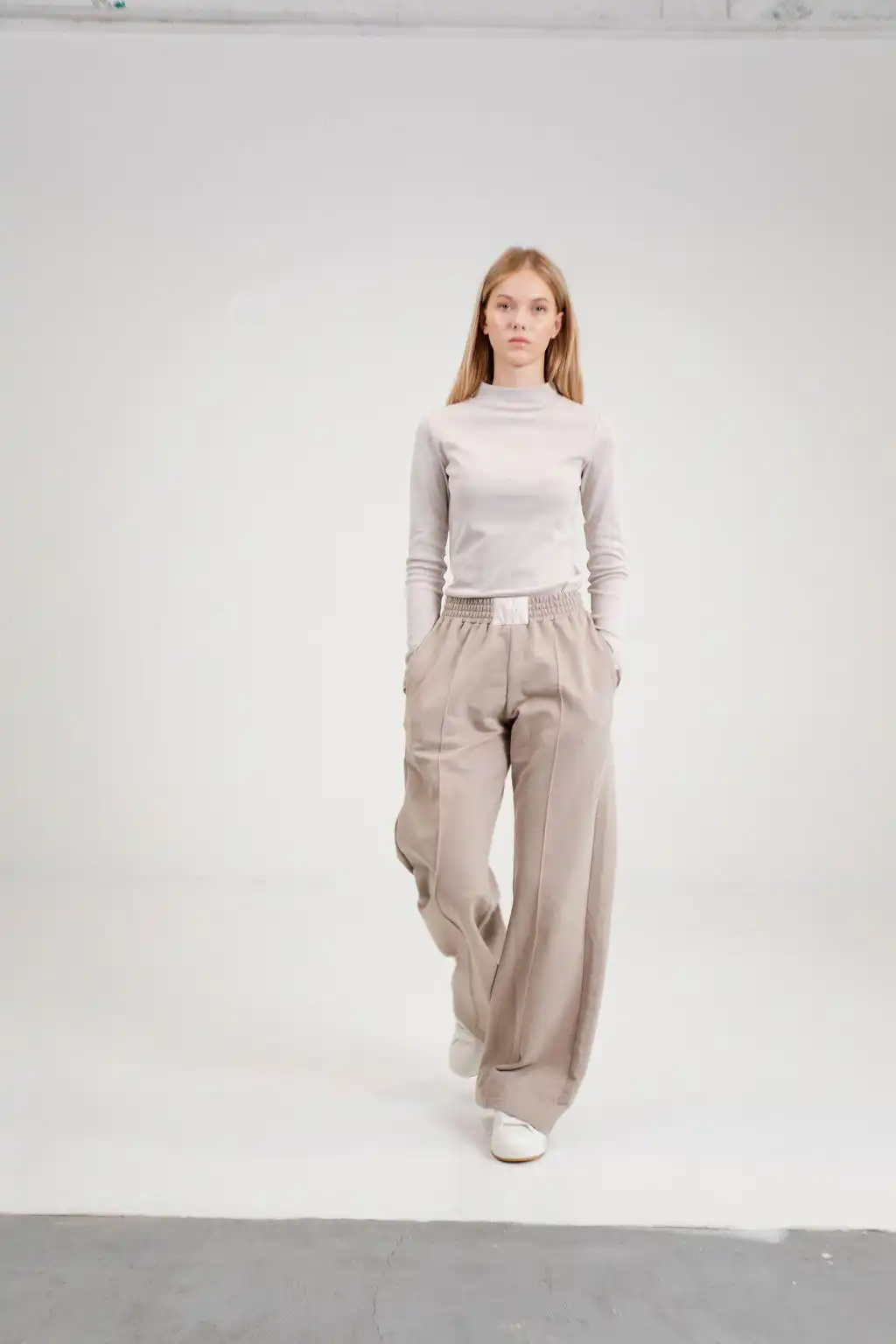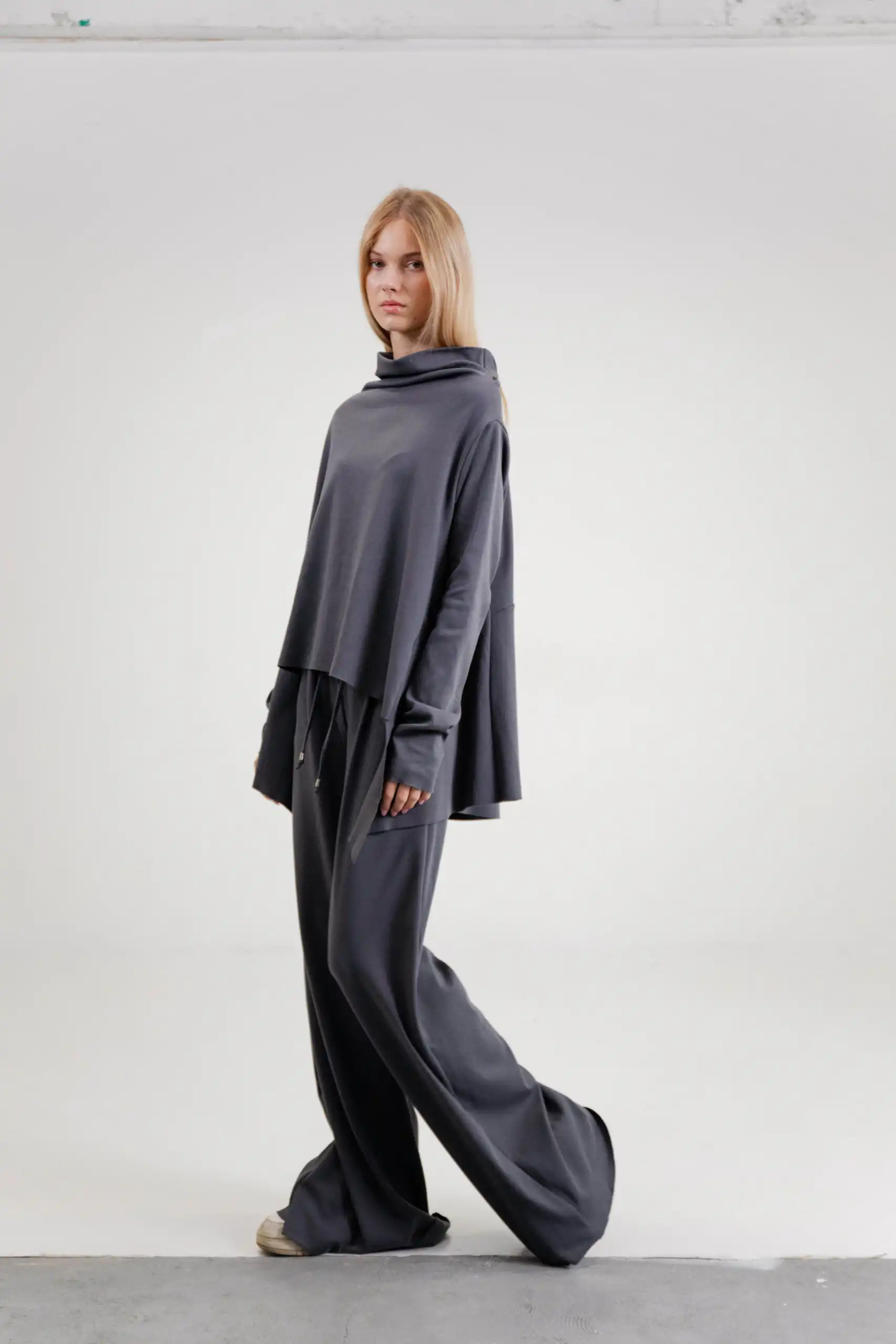 Trenerka Palazzo je naš najprodavaniji model – širokog kroja koji pristaje svakoj građi. Udobna, praktična i elegantna, izrađena od 100% organskog pamuka za celodnevni komfor i lako stilizovanje.