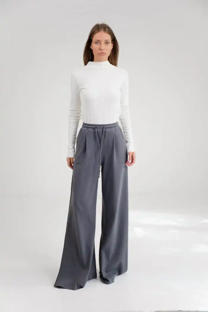 Trenerka Palazzo je bezvremenski komad koji spaja udobnost, kvalitet i moderan dizajn. Široki kroj i elastični pojas čine je idealnom za svaku građu, dok bočni džepovi dodaju praktičnost. Donja ivica nogavica nije porubljena, pa se može jednostavno skratiti na željenu dužinu bez dodatnog krojenja.